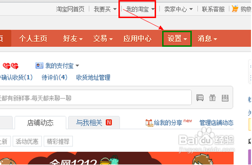 2、然后在右上角进入“我的淘宝”,然后在导航栏选择“设置”选项进行更多的相关设置。从中可以设置阿里旺旺网页版。