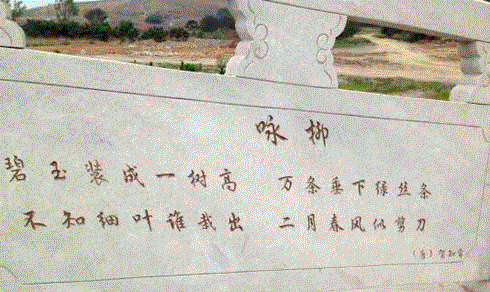 【某景区石桥上古诗咏柳"绿丝绦"成"绿丝条"】