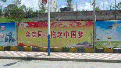 【宣传标语“拖起中国梦”,应该是“托起中国梦”】