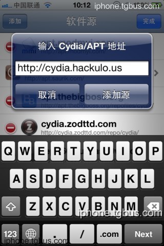 输入http://cydia.hackulo.us地址,然后点“添加源”按钮,等待载入