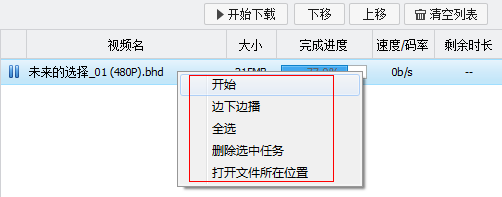 3、也可以在该界面的下载任务处点击右键,进行相应操作。