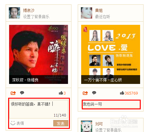你还可以在收听到的歌曲下面发表留言,分享给其他朋友。