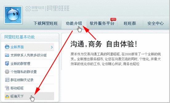 首先进入阿里旺旺的官方首页,地址在这里:http://im.alisoft.com/info.html?flag=3