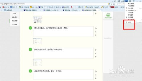 5、弹出列表后,我们在列表中选择并点击“选项”。