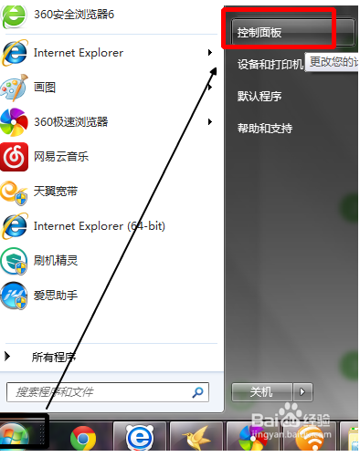 1、我想大多数童鞋应该都会使用控制面板卸载软件,就针对小白童鞋写一个详细点的卸载过程。开始--控制面板,打开控制面板。