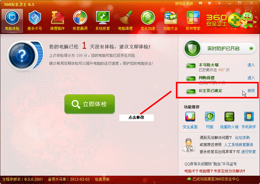 下面来看我的操作,首先我们打开360安全卫士如图所示: