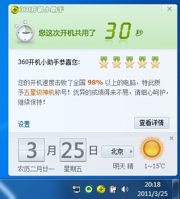 说到这里,有的人会有这样的疑问,为什么同一台电脑,不同软件计算的开机时间不一样呢?这样的疑问我们也收到很多,例如某位用户反馈,他用某款软件计算的开机时间是20秒,而360安全卫士显示的开机时间是31秒,这又是怎么回事昵?