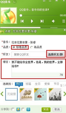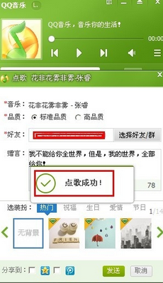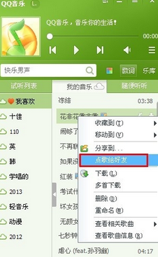 以上就是qq音乐2015点歌给好友使用全部内容,大家赶紧点首歌曲送给好友闺蜜吧。