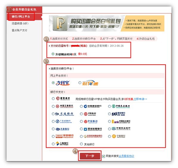 迅雷白金会员比普通会员享受的特权要多,有朋友想要从普通会员升级到白金会员,怎么使用网上银行操作呢?下面小编给大家带来的是迅雷8怎么升级白金会员 网上银行升级白金会员方法,一起来看看吧。