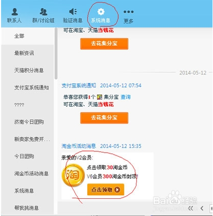 阿里旺旺2015系统消息在哪,今天在淘宝买了个东西,付款后阿里旺旺弹出一个领金币的提示,我没来得及点击就消失了,后来百转千回才找出来那个提示消息,如果你也有类似经历,不妨看看下面的内容,虽然过程不复杂但找不到的确很恨人。