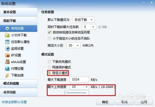 1、打开迅雷8的设置界面=》我的下载=》常用设置=》上传设置=》勾选关闭上传。