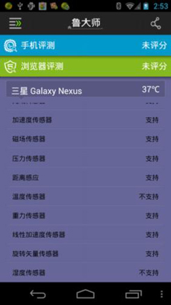 最后我们来说说【特性】这个模块。它主要罗列的是此手机是否支持的一些功能特性其实就是多点触控、光线传感器、压力传感器、重力传感器……共12项。这些资料也比较实用,比如当用户想下载一些需要特别功能的APP时,就可根据这些资料来了解自己的手机是否支持,这样就能更好的进行选择。