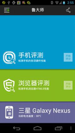 其实鲁大师手机版一经推出广受好评,经过几次的改版已是一款既专业又重视用户体验的成熟手机应用。目前鲁大师官网的最新版本为V2.0,相比之前1.0版本在UI界面上有了不小的改动。现在鲁大师手机版UI界面更符合用户的使用习惯,功能板块更加简单明了,用户极易上手。