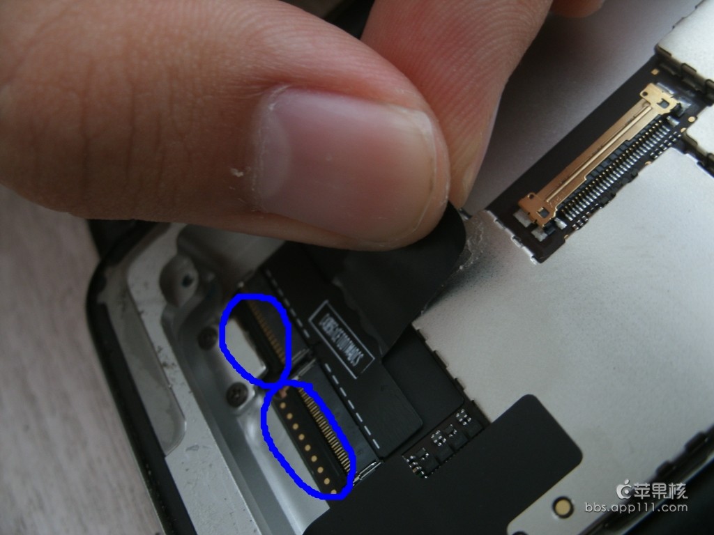 第九步:將鏡頭框和home鍵從舊屏幕放置新屏幕