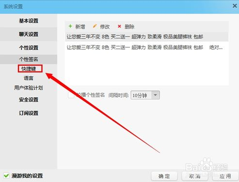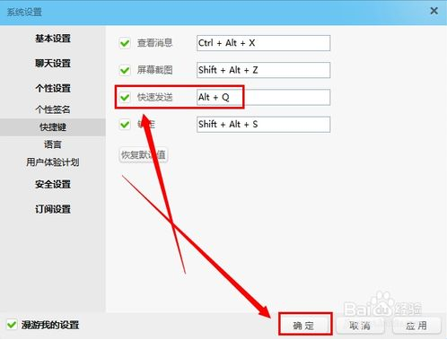 5、在快速发送那里 设置好你的快捷方式 然后点击"确定" 就可以完成 阿里旺旺的快捷发送的设置了 如图