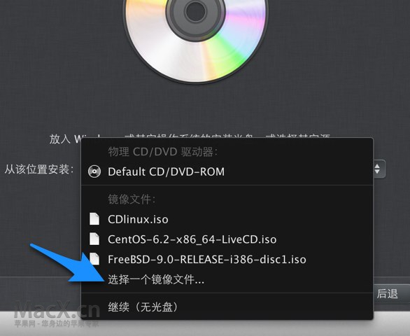 如果没有搜索出来, windows 7 的镜像文件点击选择一个镜像文件后 点击 继续..在打开的窗口内选择 windows 7 的安装镜像 iso文件 点击继续..