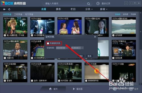 在CBox央视影音定时关机设置界面的勾选“开启定时关机”,启动下面设置关机时间。