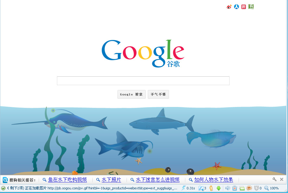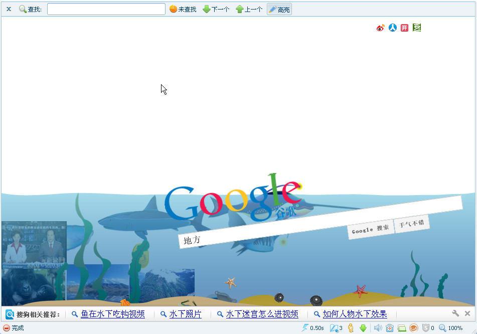 今天一上班打开google就发现google正在推行水下搜索,迫不及待的体验了一把,真是有点让人莫明奇妙的感觉。