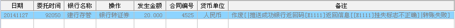 E1111挂失标志不正确 转账失败