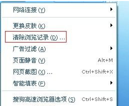 3、出现一个菜单栏。很多关于搜狗设置,皮肤都在这里可以看到。大家在菜单栏里找到清除浏览记录。