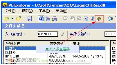步骤3:使用 PE Explorer 打开“LoginCtrlRes.dll”文件后,点击工具栏上的“资源查看/编辑”按钮。