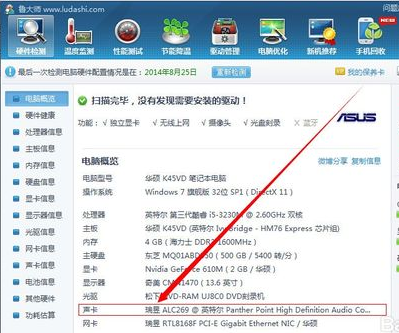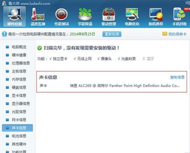 鲁大师2015查看电脑声卡信息方法/步骤