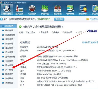 3、我们可以在界面看到自己电脑的很多信息,其中包括声卡信息