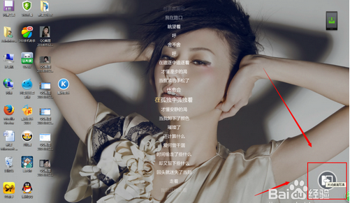 4、最小化酷狗音乐盒,我们就可以看到整个桌面变成了桌面写真,并且歌词滚动,并不影响我们进行其他操作,如果想关闭桌面写真,点击“关闭桌面写真”按钮就可以了,如图: