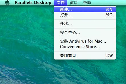 请转入屏幕顶部的 Parallels Desktop 菜单栏并选择文件→新建