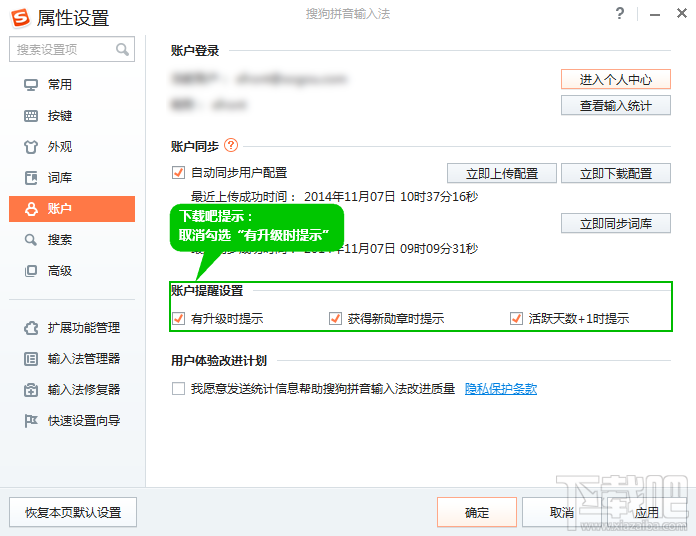 搜狗输入法关闭升级提示方法