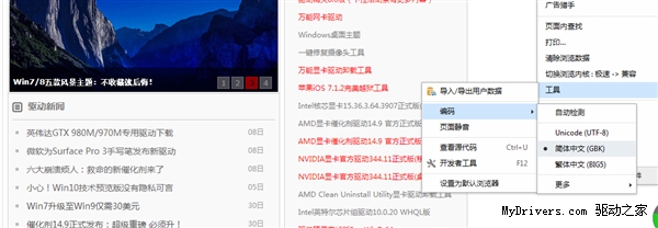 打开任意浏览器,在选项中找到工具,然后选择编码,在选择中文即可