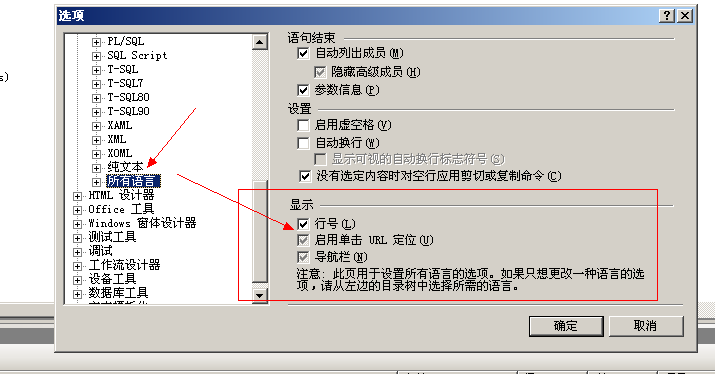 依次选择工具,选项,然后选择要显示行号的语言,比如说这里选择C#,然后勾选“显示”下面的“行号”复选框,然后确认即可。