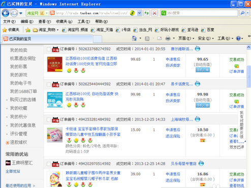 3、这时会以您当前的阿里旺旺账户登录到淘宝网,并以网页形式显示您所有的交易记录。