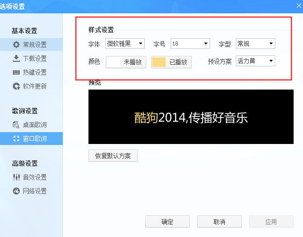 第三步:在样式设置中就可以设置歌词字体的大小了。