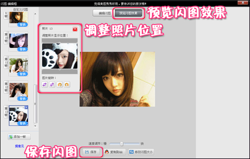 调整每张照片的显示范围以及闪图速度,满意后“保存”闪图。