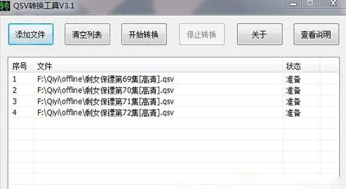 第二步、打开QSV文件转换工具,点击左上角的添加文件,找到要转换的QSV文件,可以同时添加多个文件,添加完毕后点击“开始转换”即可。