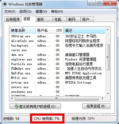 打开以后我们在任务管理器的最下面就可以看到CPU的使用率。