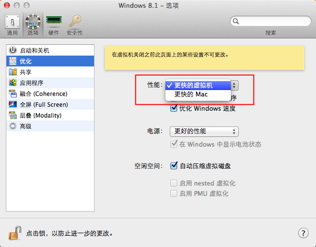 •更快的虚拟机:更多的计算机资源被分配给 Windows。Windows 程序的性能可能获得大幅提升,但 Mac OS X