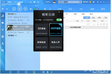 历经N代PC的播放器品牌,酷狗在2015年跨年推出的“蝰蛇”音效版以3D丽音、HiFi现场、超重低音、纯净人声四种模式以满足广大用户对音质的追求,对音质的享受,小编也逐一视听。