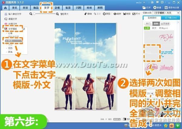 6、最后进入“文字”菜单,点击“文字模版-外文”,选择两次如图模版,调整相同的大小并完全重合