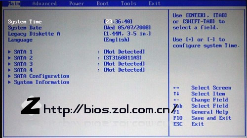 我们看到,菜单里的第三行Legacy diskette A,这个是配置软盘驱动器的一个选项。你可以在这里选择你软驱的类型,比如1.44M 3.5in。当然,目前已经有80%以上的用户装机时不需要软驱了,软驱的使用率也越来越低,优盘几乎取代了一切。对于没有软驱的电脑,在这里设置成Disabled,关闭软驱检测。