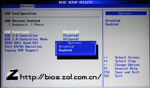 USB Conguration里的内容不多,其中,USB Functions就是配置是否开启USB功能的项目,对于普通用户来说,当然应该开启此功能了。不过网吧机的话,这里就应该选择Disabled。