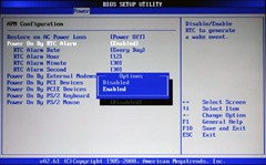 下面几个项目都是一些开机的方法设置,比如定时开机,远程Modem控制开机,PCI设备控制开机,键盘开机、鼠标开机等。使用方法都差不多。这里我们以键盘开机为例将一下这里的知识。