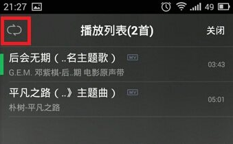 4、在左上角就可以看到播放模式设置了,默认是“列表循环”模式。