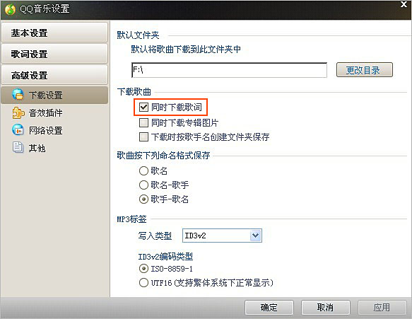 qq音乐下载歌曲时同时下载歌词