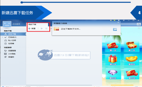 打开迅雷,点击新建如图,出现种子解析。然后等待下载。
