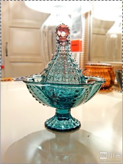 13、合并图层,用多边形套索工具把主题玻璃瓶的以外要虚化的地方选中,如下图: