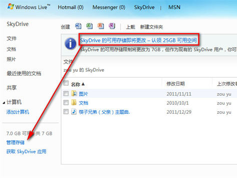 据消息称:微软网盘Skydrive的容量已经开始全面的缩水了,由原来的25GB,跑到了7GB,以后注册的用户也就只有7GB了,如果之前有注册的话,使用的时候比较少的话,就会缩水到7GB,不过,微软给出了我们挽救的时间,大家就赶紧的下手吧。如果之前没有注册的话,就不用参与此活动了哦.