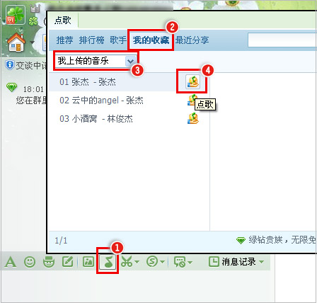 1、普通用户每天可在好友聊天窗口无限次分享QQ音乐,在群聊天窗口免费分享音乐1次/天,成为绿钻贵族后可无限免费分享;