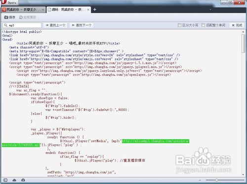 接着在键盘上找到ctrl和f键,同时按下,在左上角出现一个小方框输入“MP3”在页面提示源代码的几个出现MP3的地方你会找到一个后缀为MP3的下载链接。。。。找到这个链接那么就简单,复制到下载工具,这里我是用的qq旋风,不是知道是不是网络原因开始一直没动,但离线下载之后3秒钟就下完了